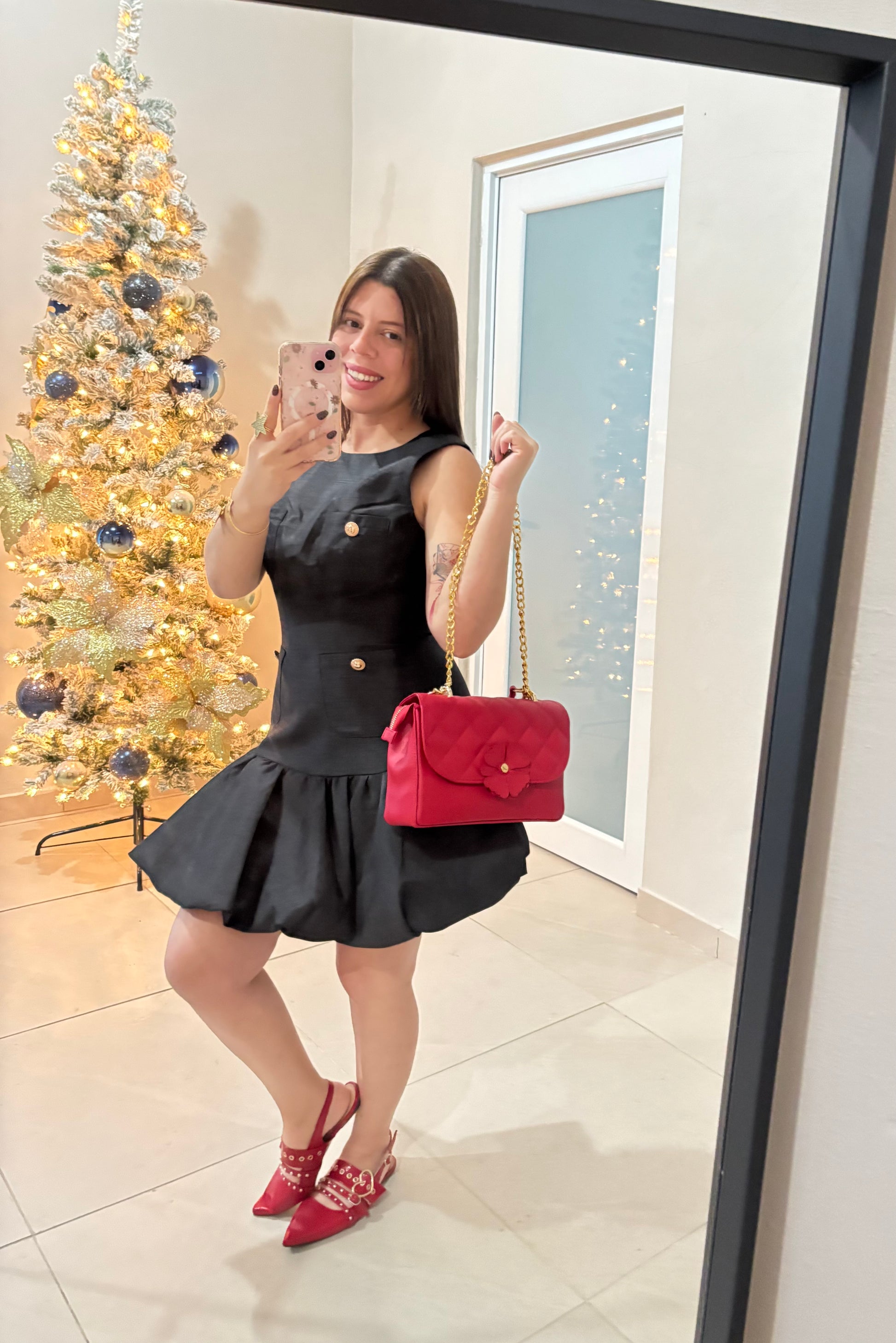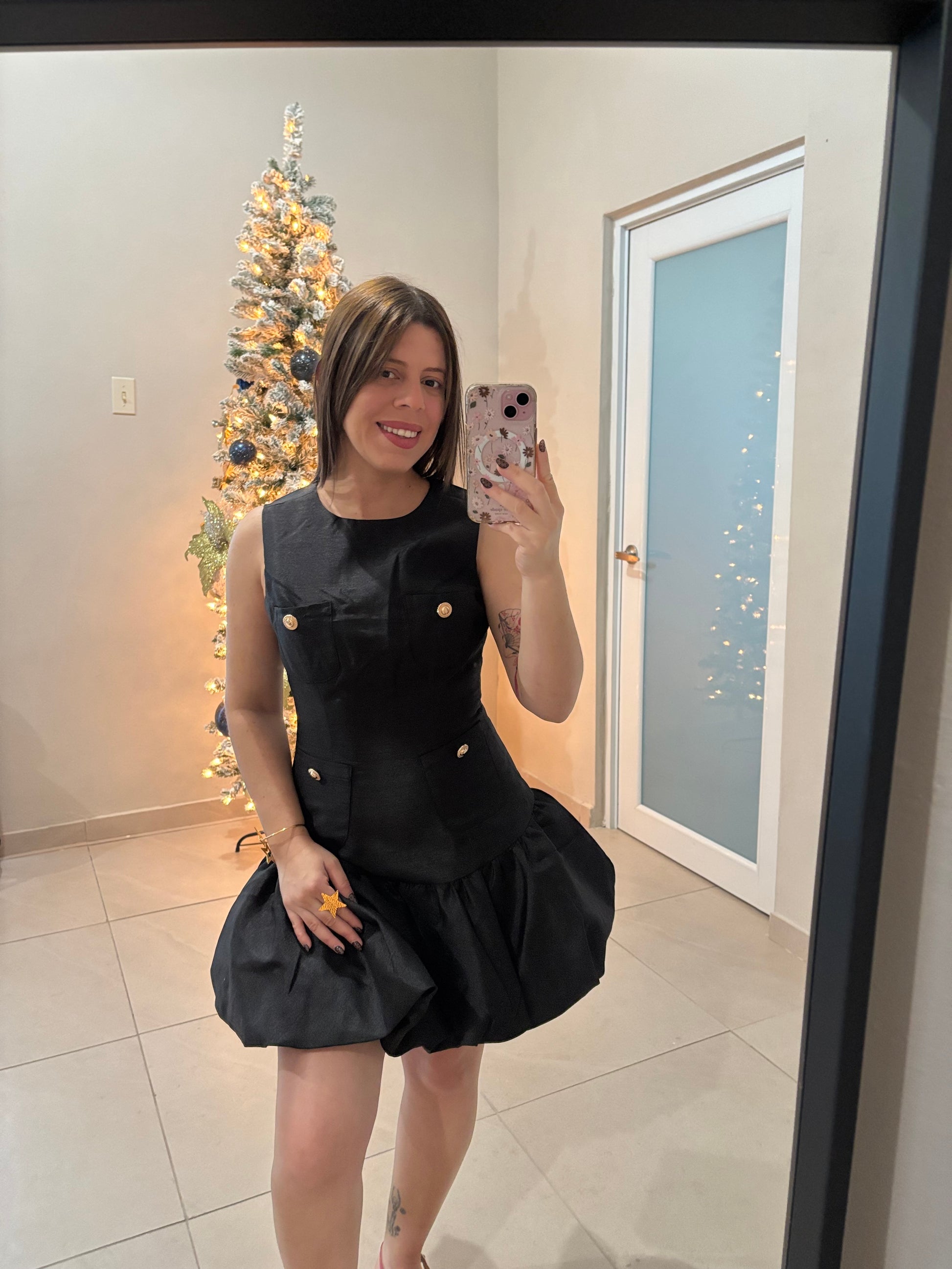 Solid sleeveless bubble hem mini dress with front pockets patch